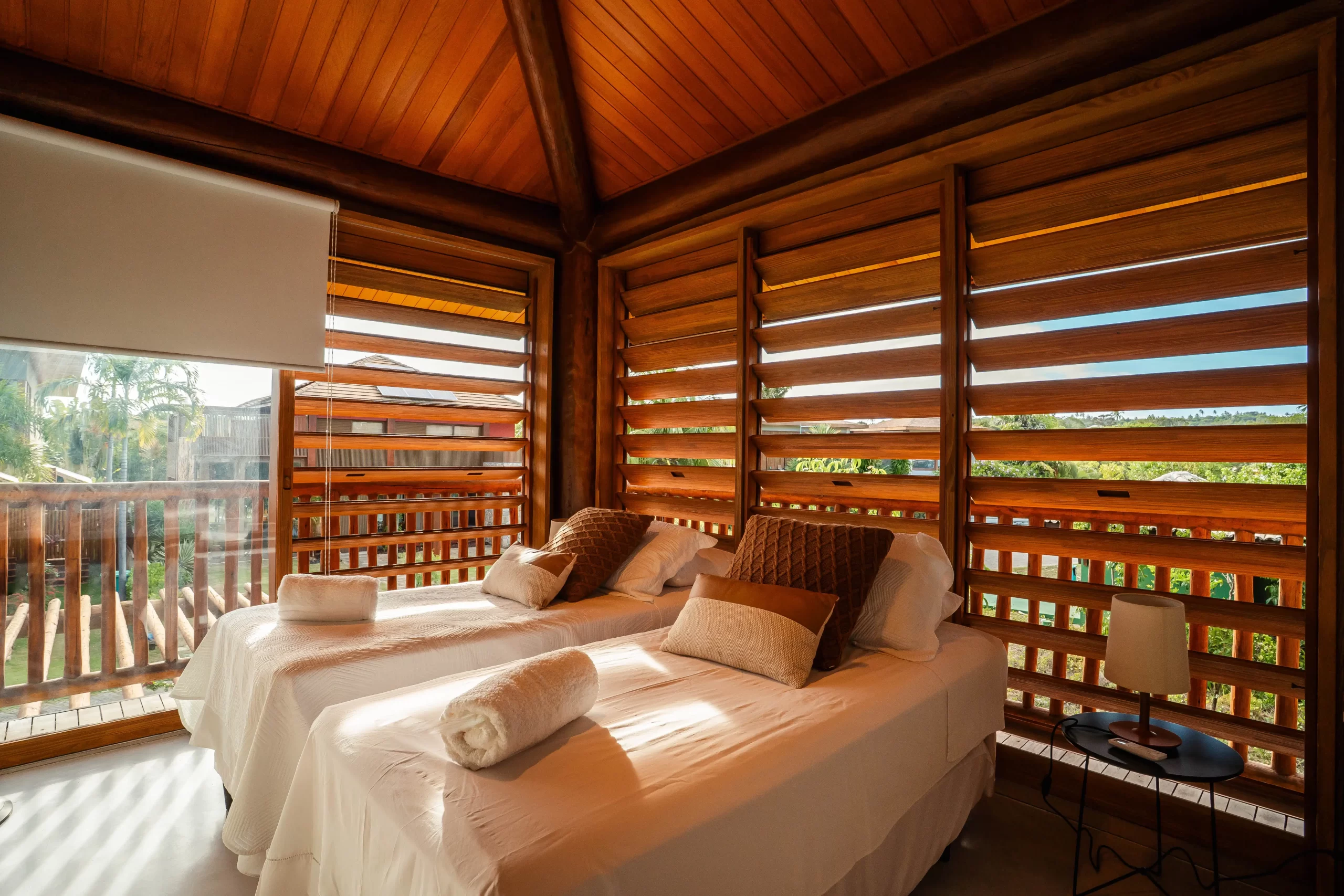 A Casa 25 é um verdadeiro refúgio de praia com alma acolhedora e estética sofisticada. Sua arquitetura em madeira, combinada com persianas que dialogam com a luz e a ventilação natural, cria uma atmosfera única — ao mesmo tempo charmosa, elegante e